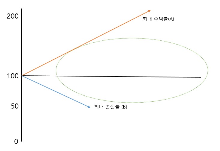 시드의 2% 손절폭과 1:2의 손익비를 추구하는 모형이라면 매번 1:2의 손익비만을 추구해서는 100% 수익에 도달하는데 시간 대비 노력의 효율이 떨어지며, 추세 매매라 부르기도 민망해진다. 어느 순간인가는 추세를 붙들고 늘어져 1:5, 1:10 이상의 손익비를 만들어 내야 한다. 따라서 누적수익이 어느 정도 충분하다면 조금 공격적인 진입을 통해 기회를 늘리고, 가능한 추세를 따라가는 매매로 수익을 늘리는 방법이 필요하다. 쌓인 수익을 바탕으로 레버리지를 늘려 매매를 하는 것과는 결이 다른 이야기다.