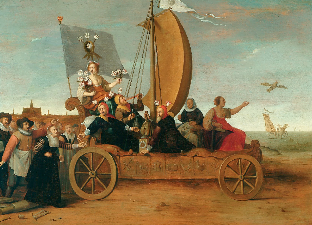'flora's wagon of fools' 혹은 '플로라의 돛 단 수레'라고도 불리는 이 그림은 네덜란드 화가인 Hendrick Gerritsz Pot(1580-1657)의 1637년 작품으로 그 해 절정에 달한 후 마침내 붕괴해 버린 튤립 버블을 묘사하고 있다. (Frans Hals Museum Haarlem 소장)